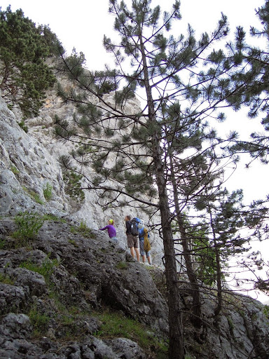 V sobotu ráno jsme vyrazili vlakem do Winzendrofu odtud pěšky do tábořiště pod Hohe Wand. Kolem poledne jsme se utábořili a vyrazili. Kluci na vícedélku pod vyhlídkou Skywalk a já s holkama na jejich první ferratu v životě.