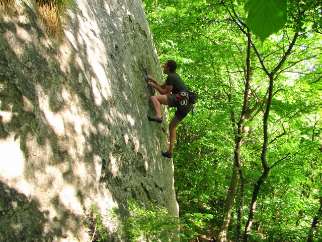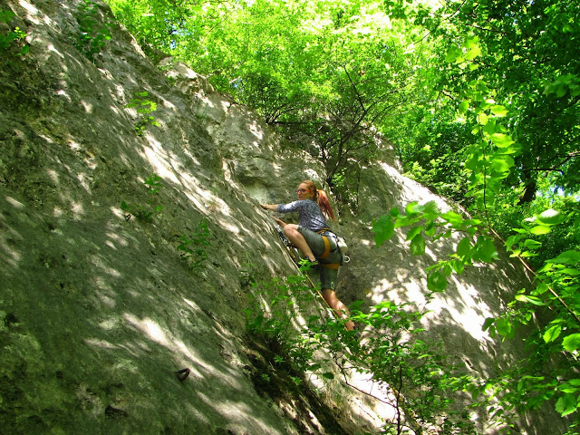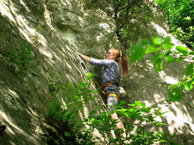 V pátek jsem jako obvykle vstávala v době, kdy Paulina ještě spala. Hned po škole jsme jeli s Petrem opět do Badenu, vyzkoušet další skálu z badenské "Kletterschule". Pěkně jsme si zalezli, téměř až do tmy a pěkně jsme se proběhli na vlak, který nám ujel přímo před nosem. Ale to nevadilo, protože z Badenu jezdí vlaky do Vídně cca jednou za půl hodiny. Jen těch několika kilometrů od vlaku už začínáme mít plné zuby, když je chodíme pořád tam a zpátky.Potkali jsme partu lezců, kteří si cestu krátili na kole, takže v tom nejsme sami. Nicméně je to paráda mít takovou oblast kousek od Vídně, protože za zpáteční jízdenku dáme se všemi možnými slevami a tramvajenkou jen 4 eura a to je méně než zaplatíte za vstup na jakoukoliv stěnu.