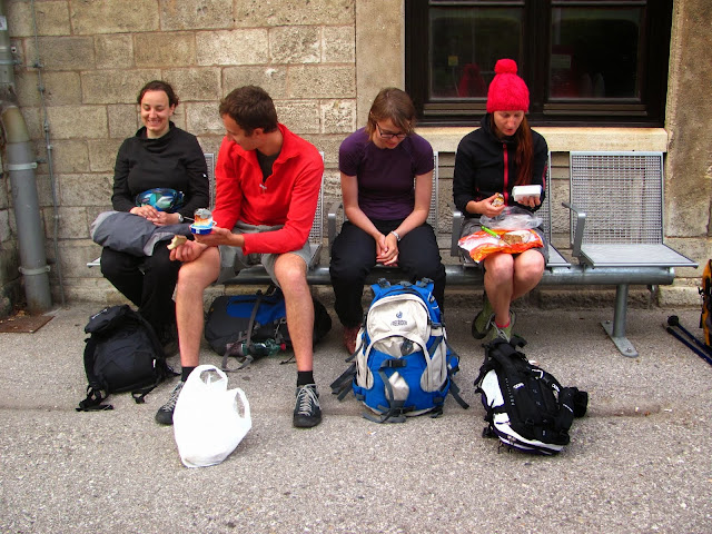 | Šťastně večeříme na nádraží v Payerbachu. Dokonce nám jede přímý vlak zpátky do Vídně. |