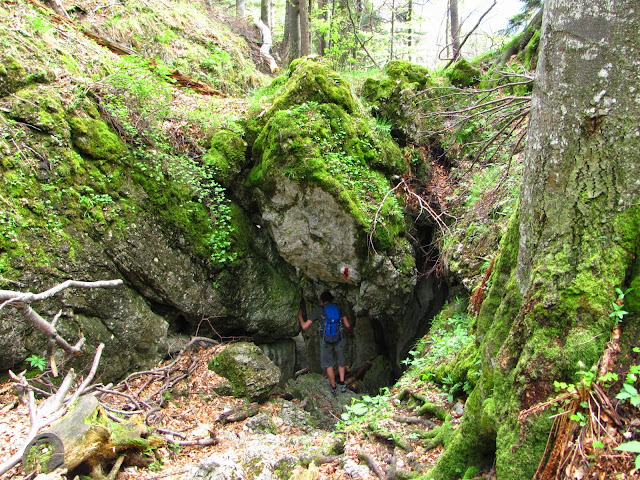 | Dolů jsme sestupovali soutěskou vedoucí do Höllentalu, s plánem chytit autobus v 17:45 |