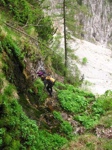 V sobotu ráno jsme vyrazili vlakem do Winzendrofu odtud pěšky do tábořiště pod Hohe Wand. Kolem poledne jsme se utábořili a vyrazili. Kluci na vícedélku pod vyhlídkou Skywalk a já s holkama na jejich první ferratu v životě.